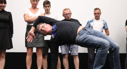O godz. 18.00, w kinie Karolinka odbyła się projekcja filmu „Najlepszy”, a nasz bohater oglądał go z nami (choć tego już nie robi). Po filmie odpowiadał na pytania, ale głównie nas motywował do stawiania sobie celów, a na koniec przeprowadził trening z publicznością.