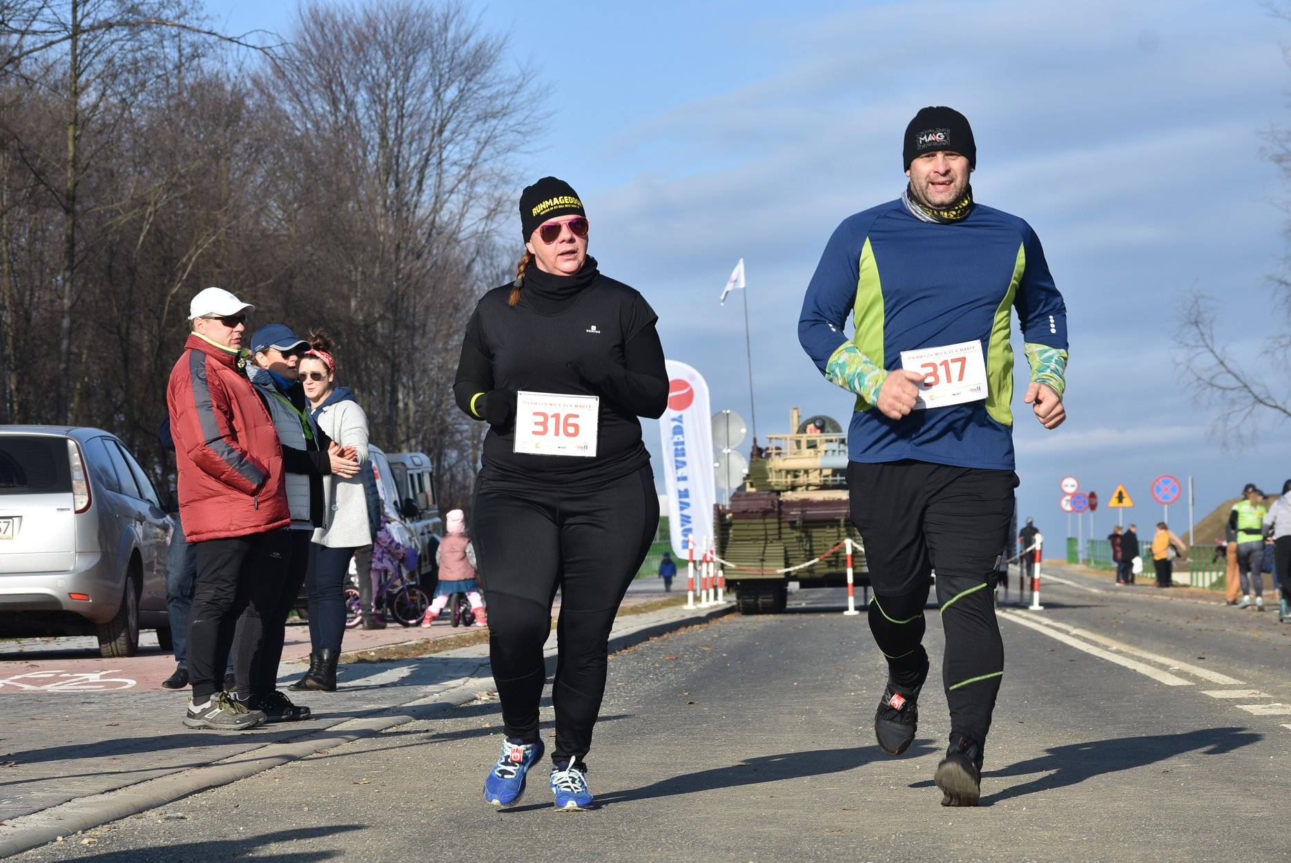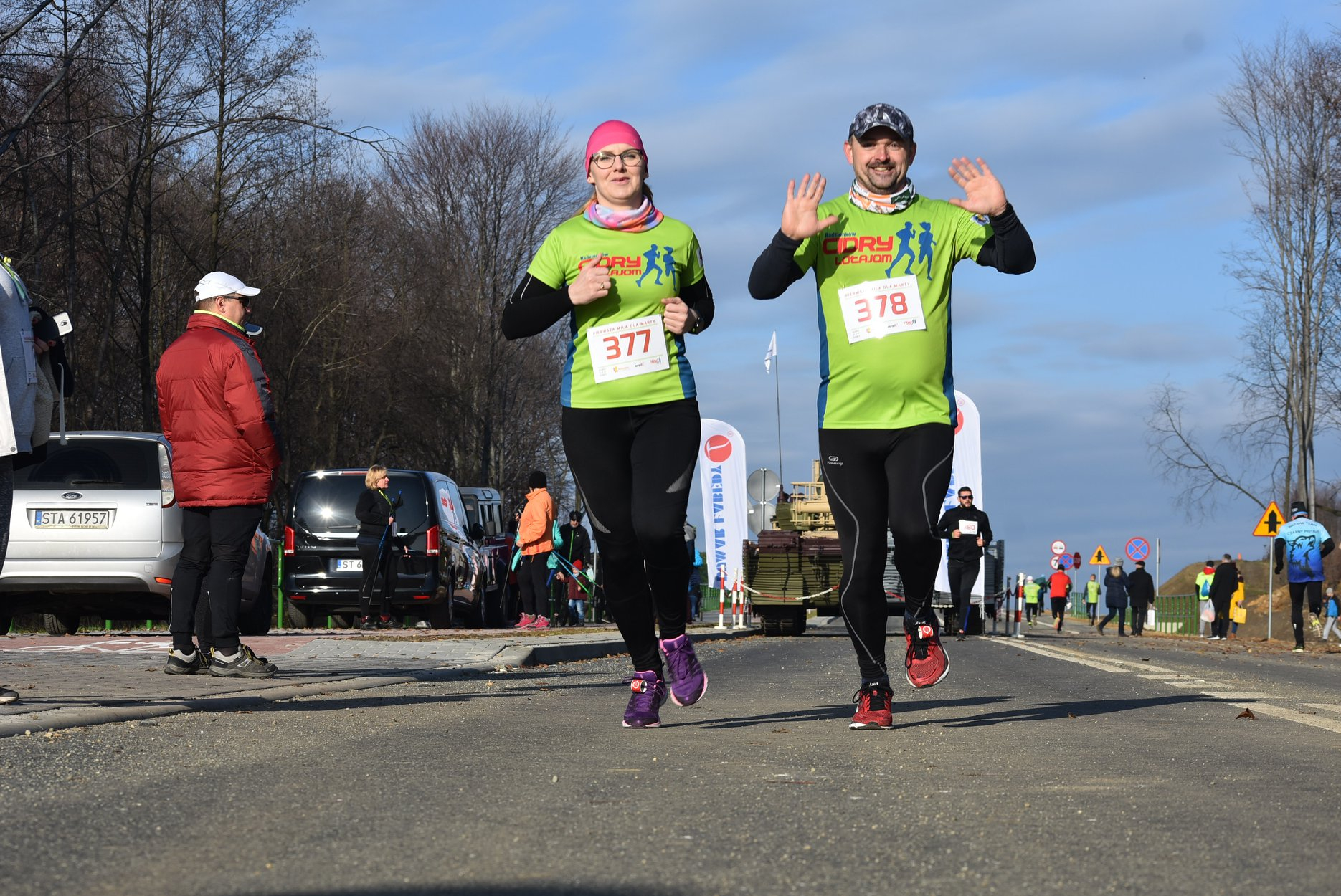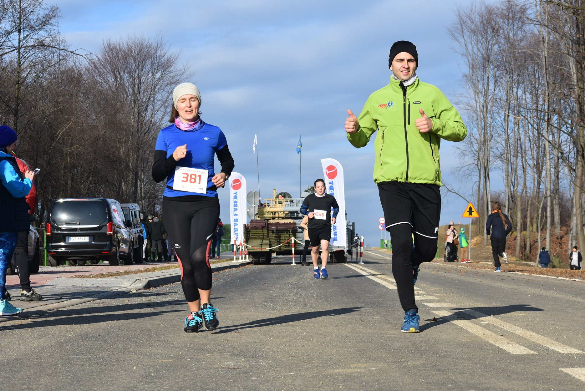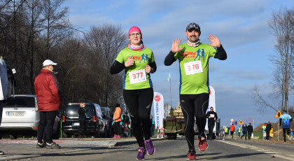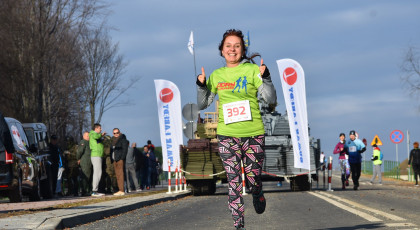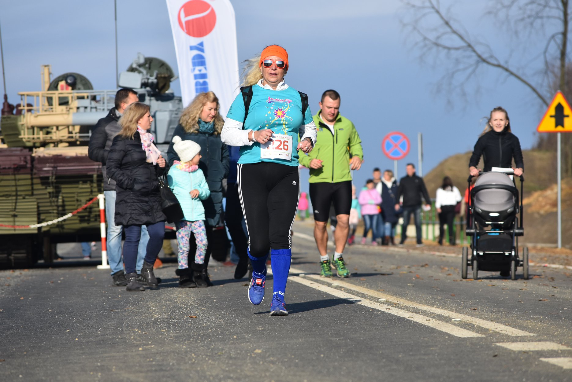 Marta też ostatecznie była z nami. Udało jej się wyrwać ze szpitala i przez nową obwodnicę Radzionkowa, na której odbywał się bieg, przejechała... czołgiem!