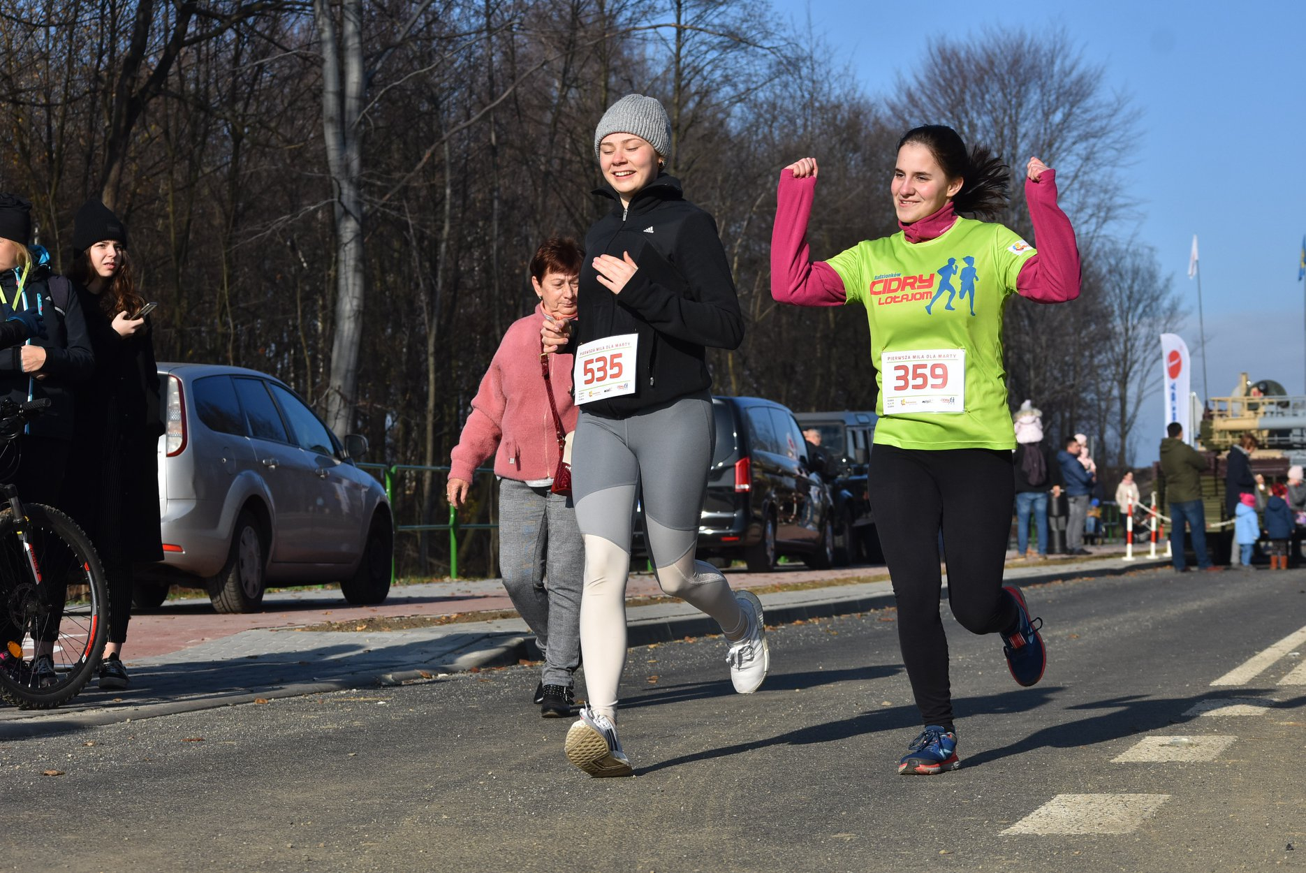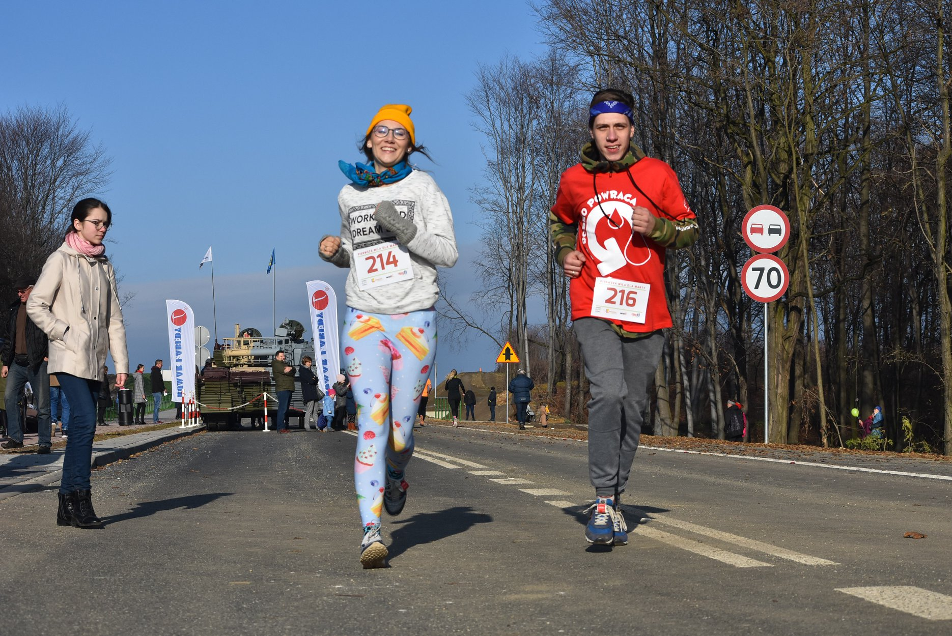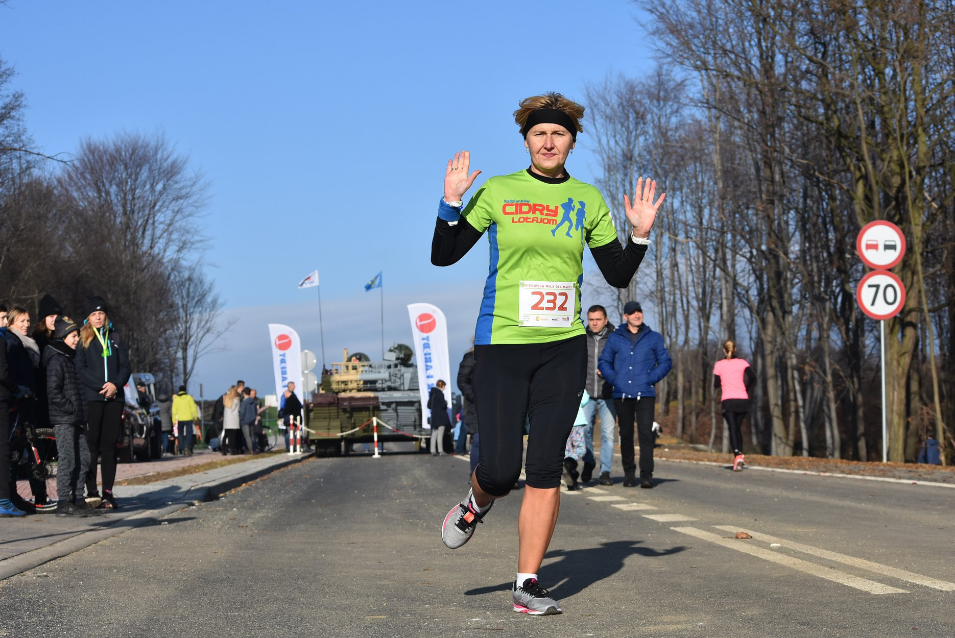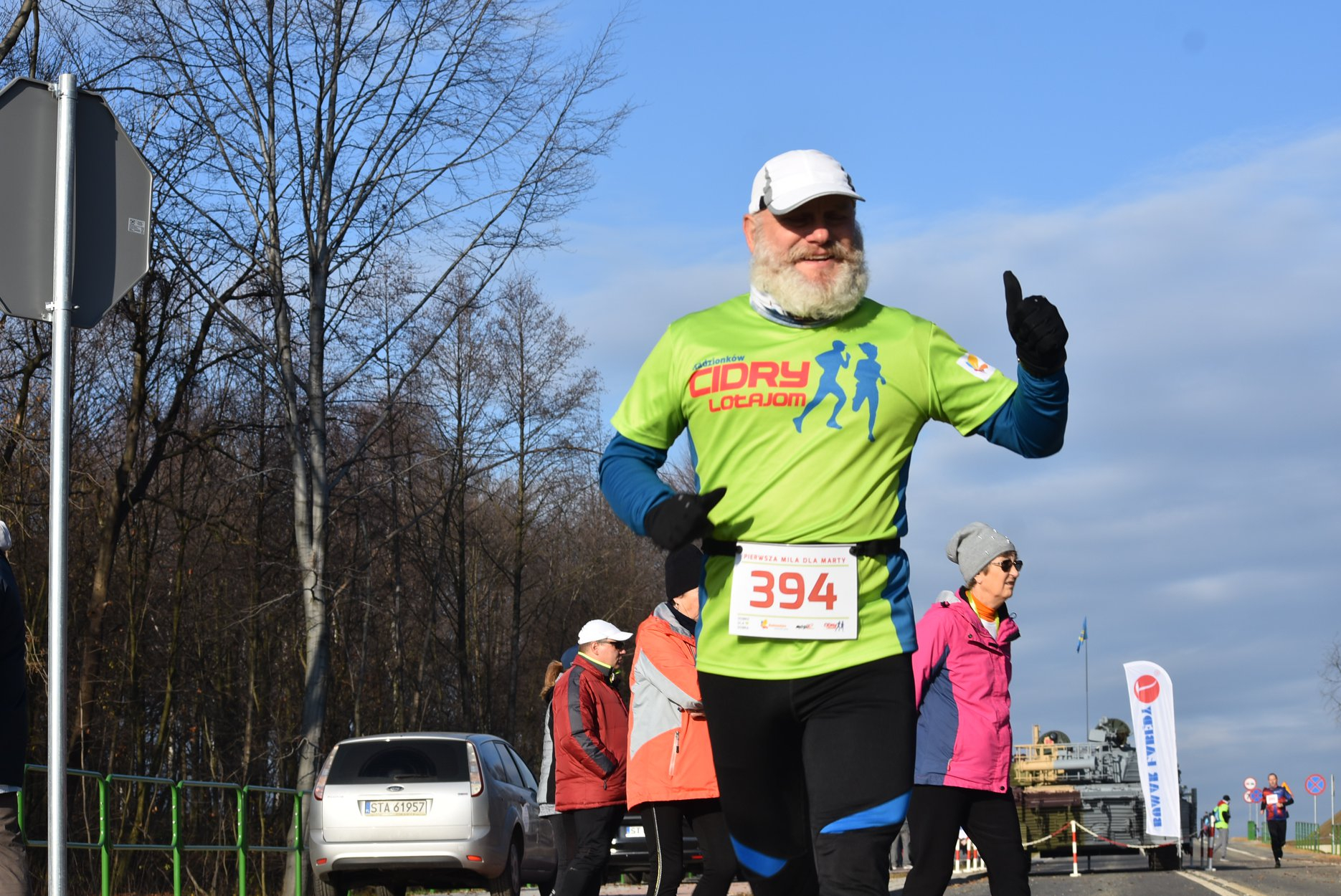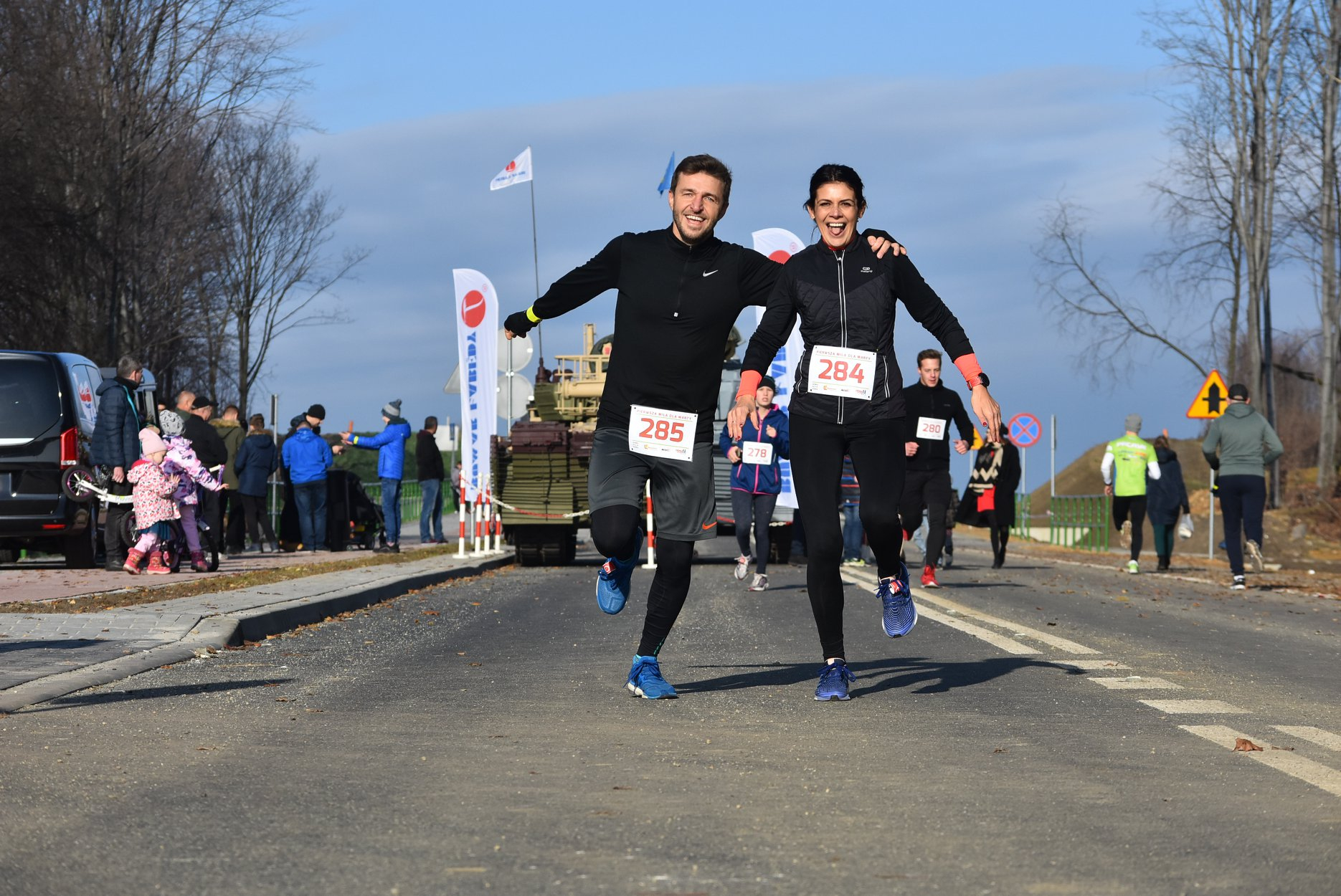 Marta też ostatecznie była z nami. Udało jej się wyrwać ze szpitala i przez nową obwodnicę Radzionkowa, na której odbywał się bieg, przejechała... czołgiem!
