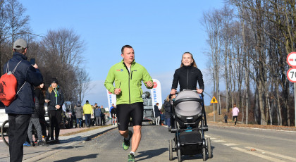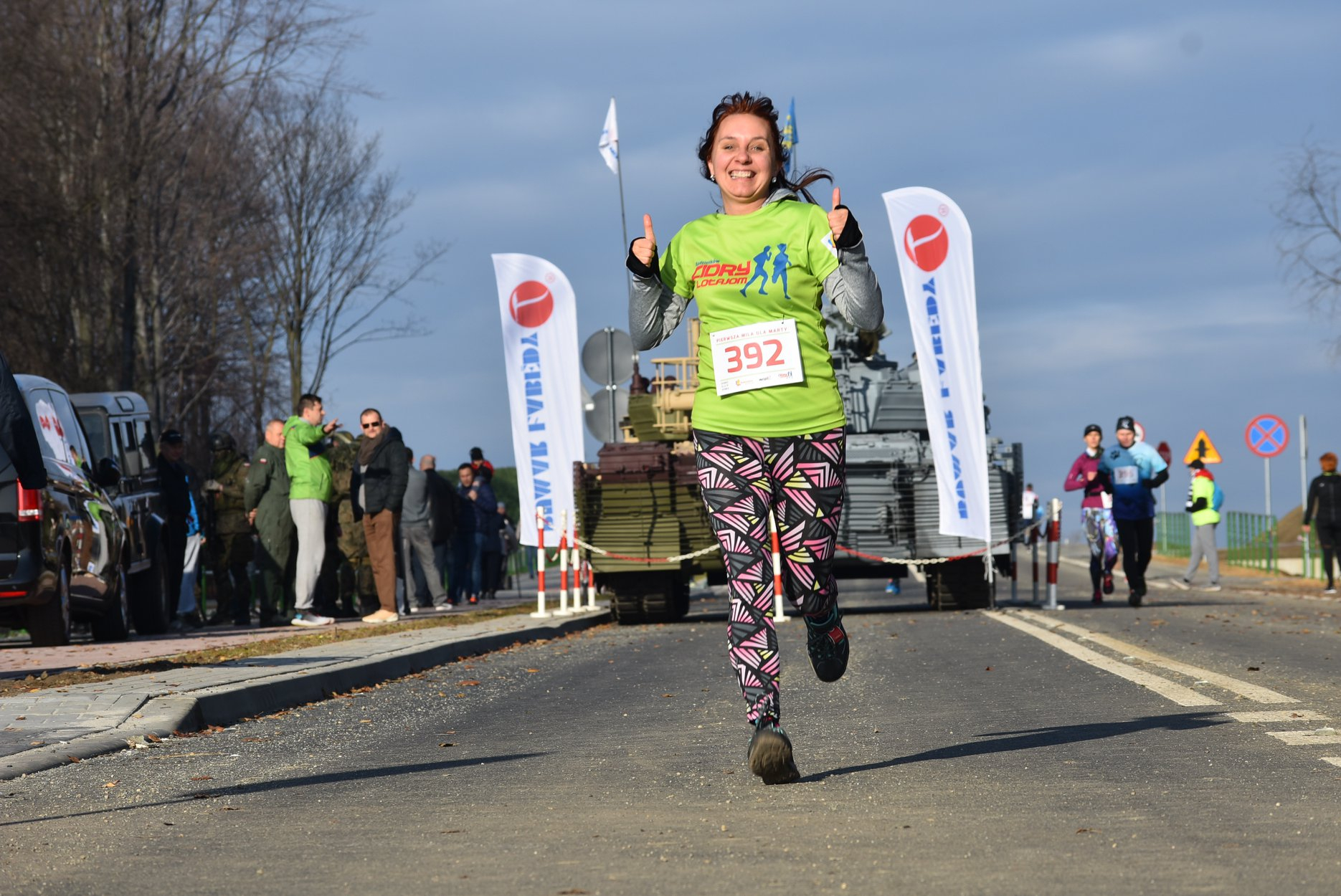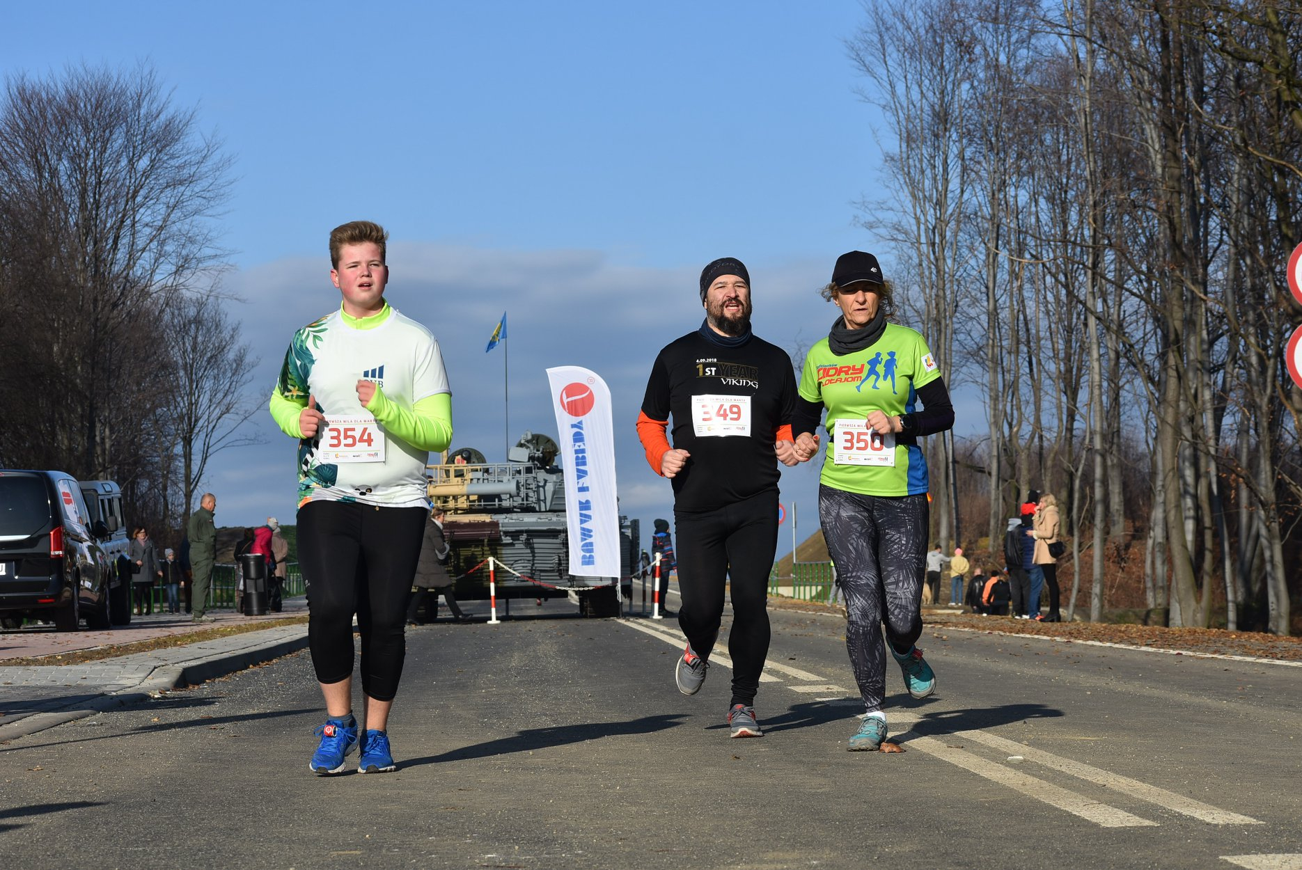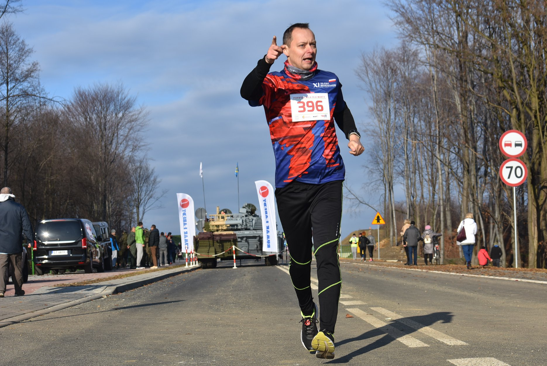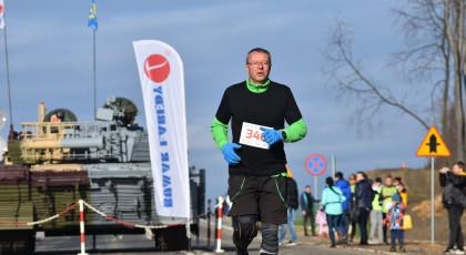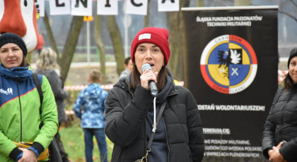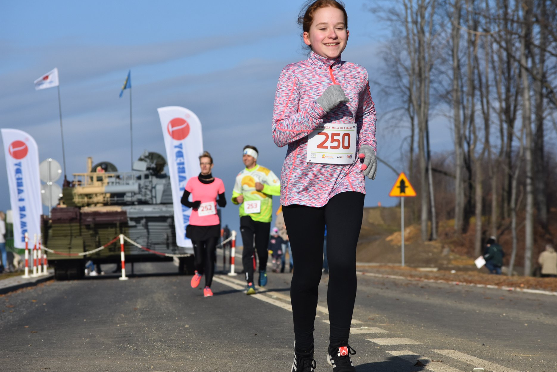 Marta też ostatecznie była z nami. Udało jej się wyrwać ze szpitala i przez nową obwodnicę Radzionkowa, na której odbywał się bieg, przejechała... czołgiem!