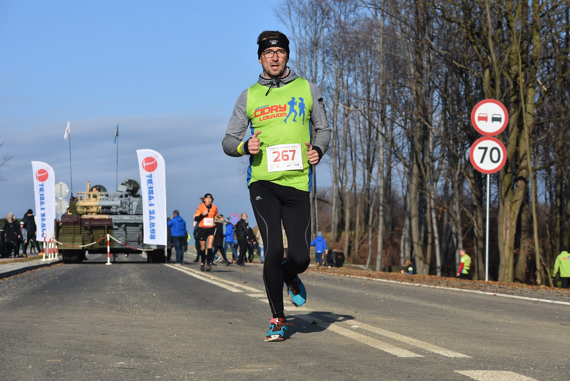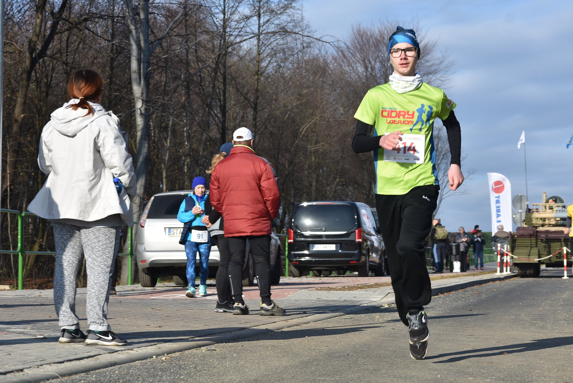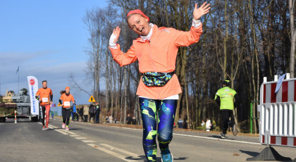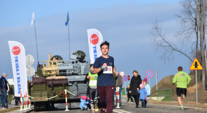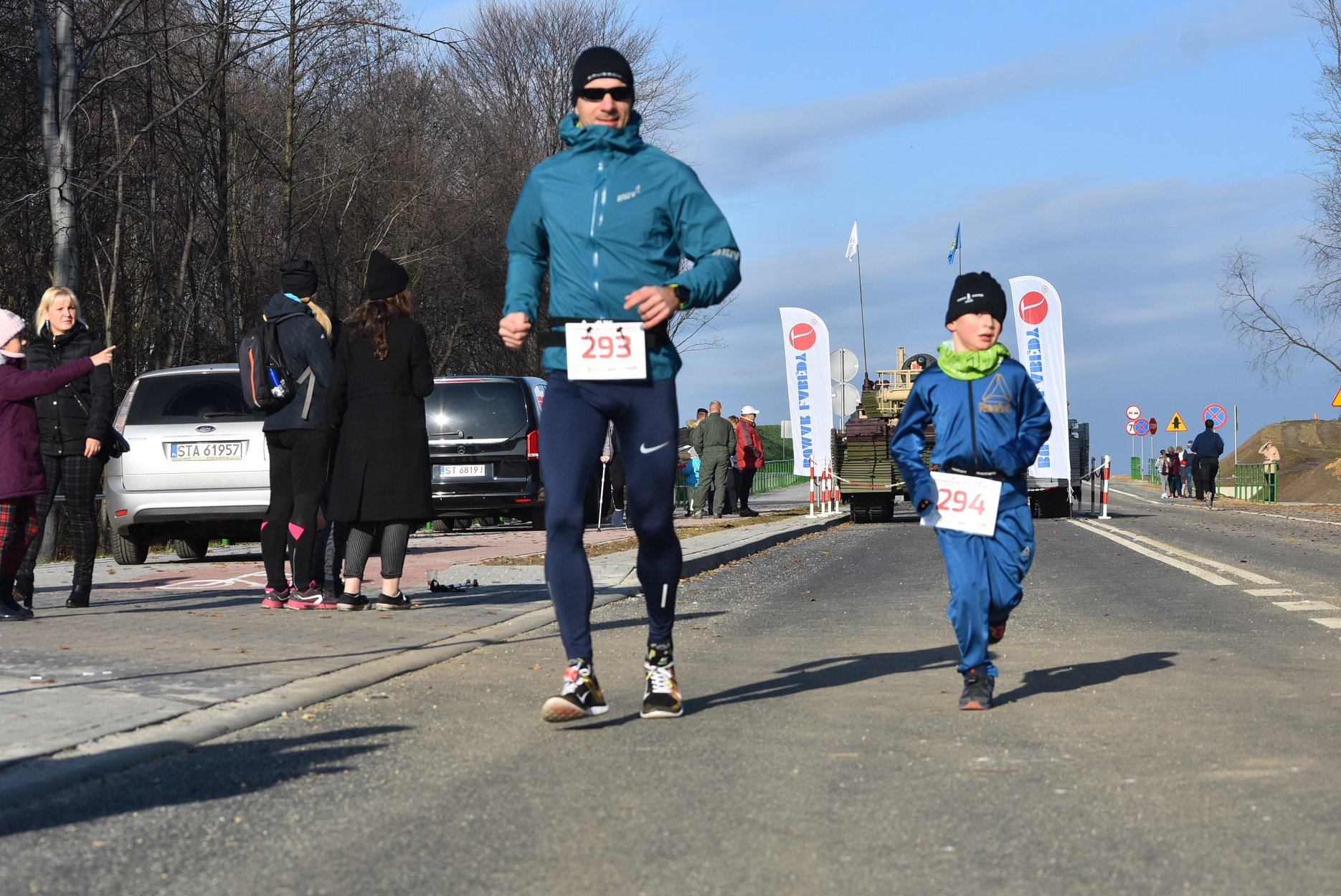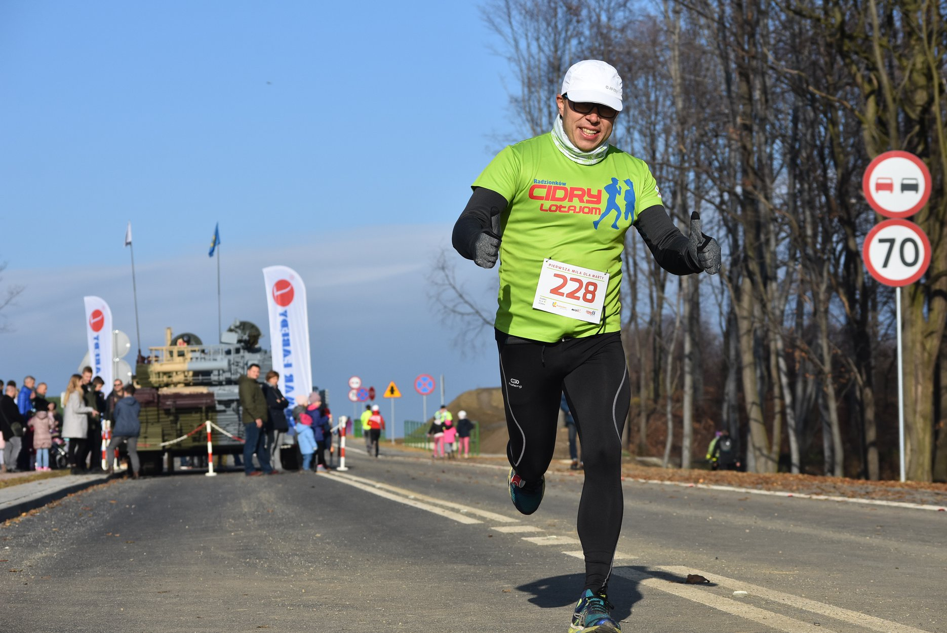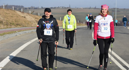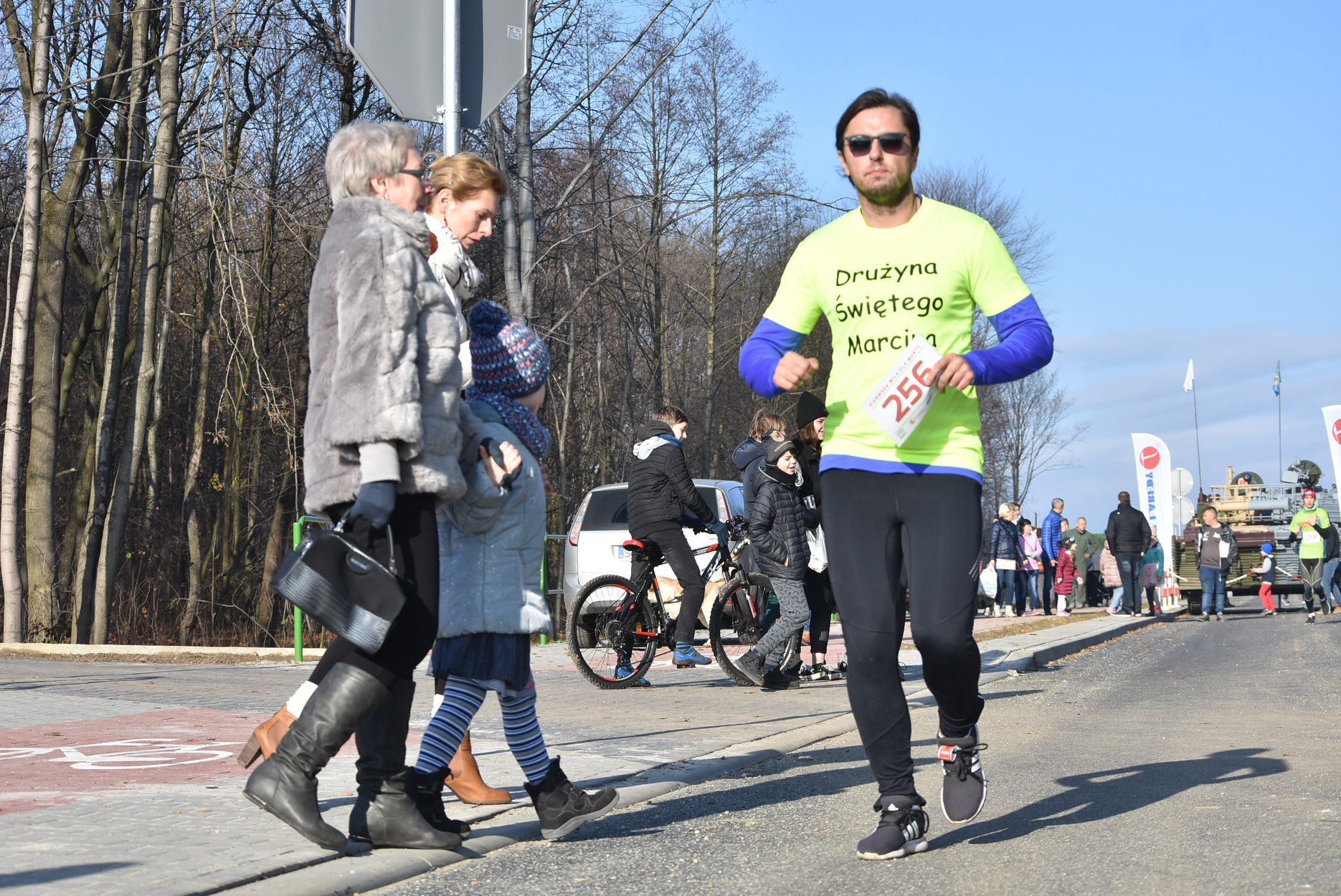 Marta też ostatecznie była z nami. Udało jej się wyrwać ze szpitala i przez nową obwodnicę Radzionkowa, na której odbywał się bieg, przejechała... czołgiem!