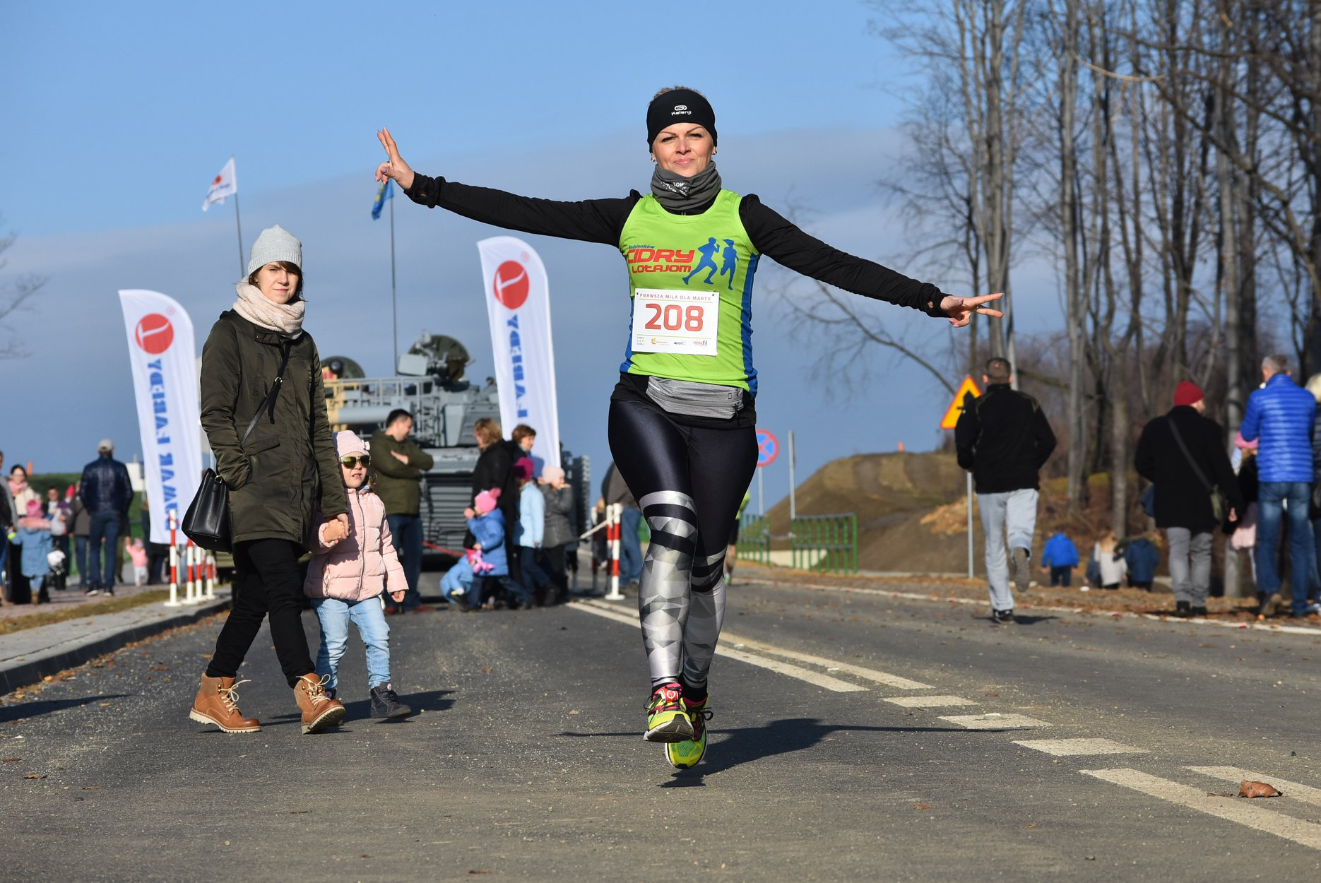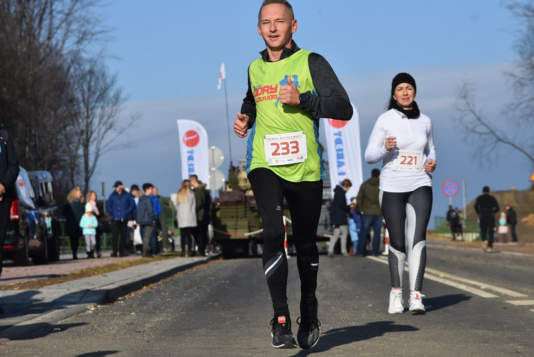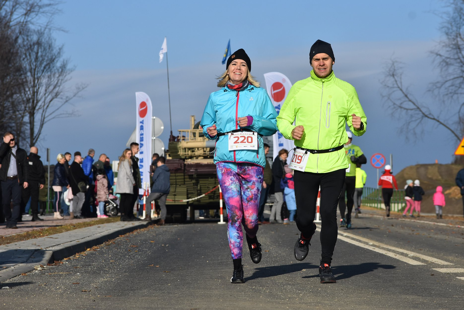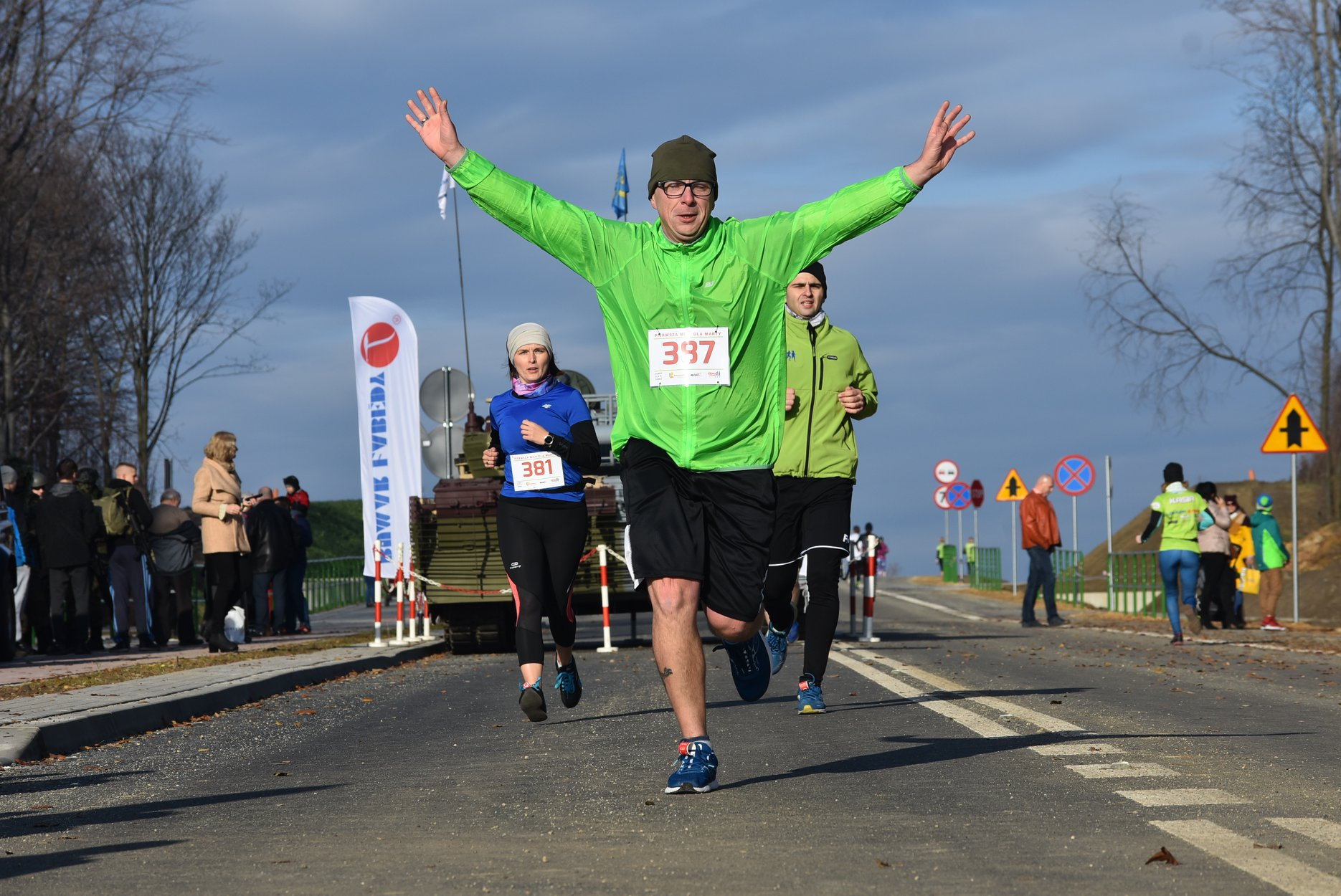 Marta też ostatecznie była z nami. Udało jej się wyrwać ze szpitala i przez nową obwodnicę Radzionkowa, na której odbywał się bieg, przejechała... czołgiem!