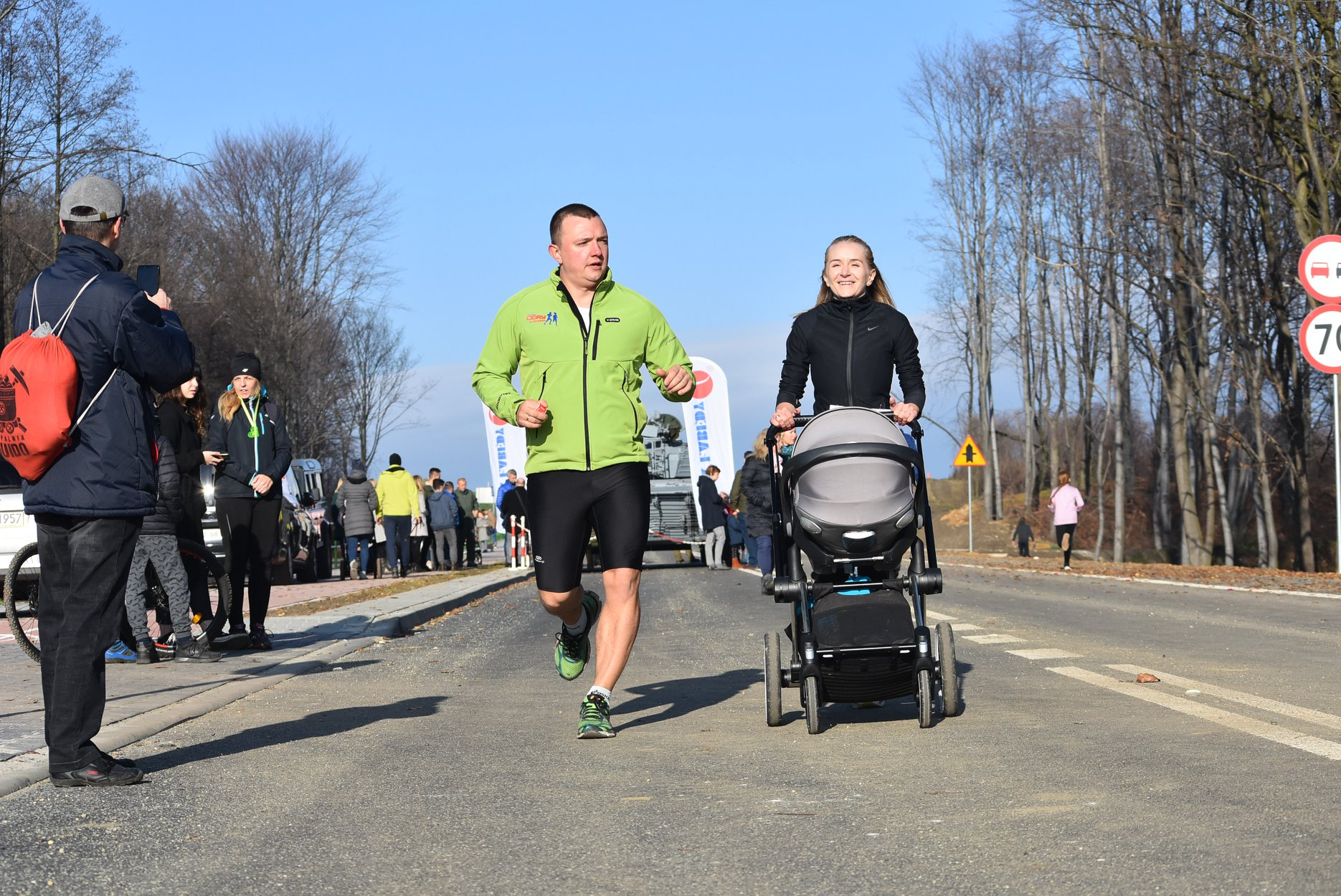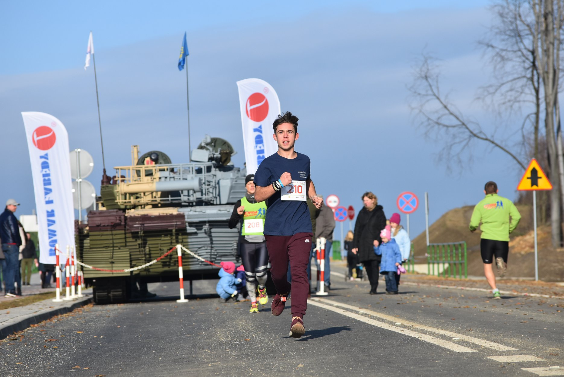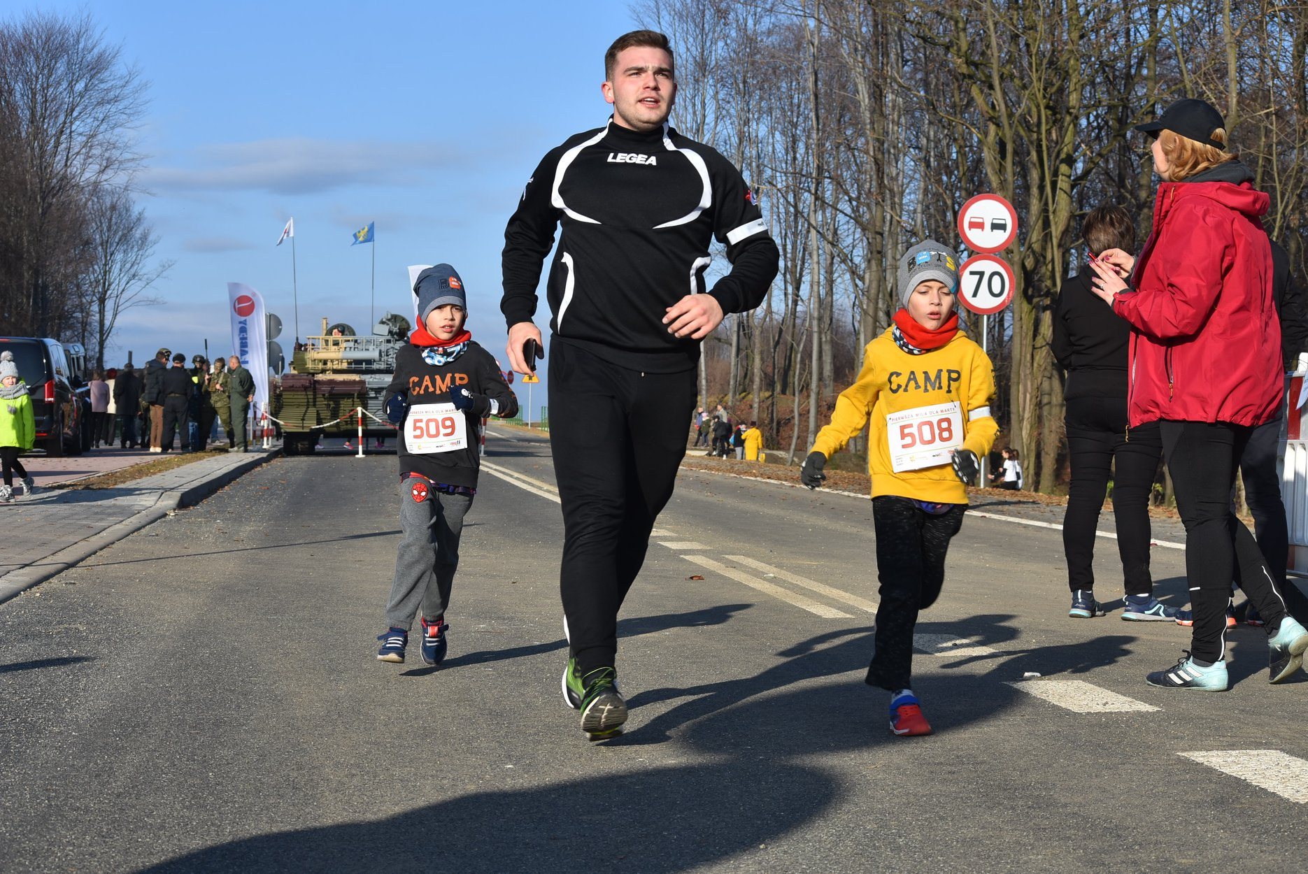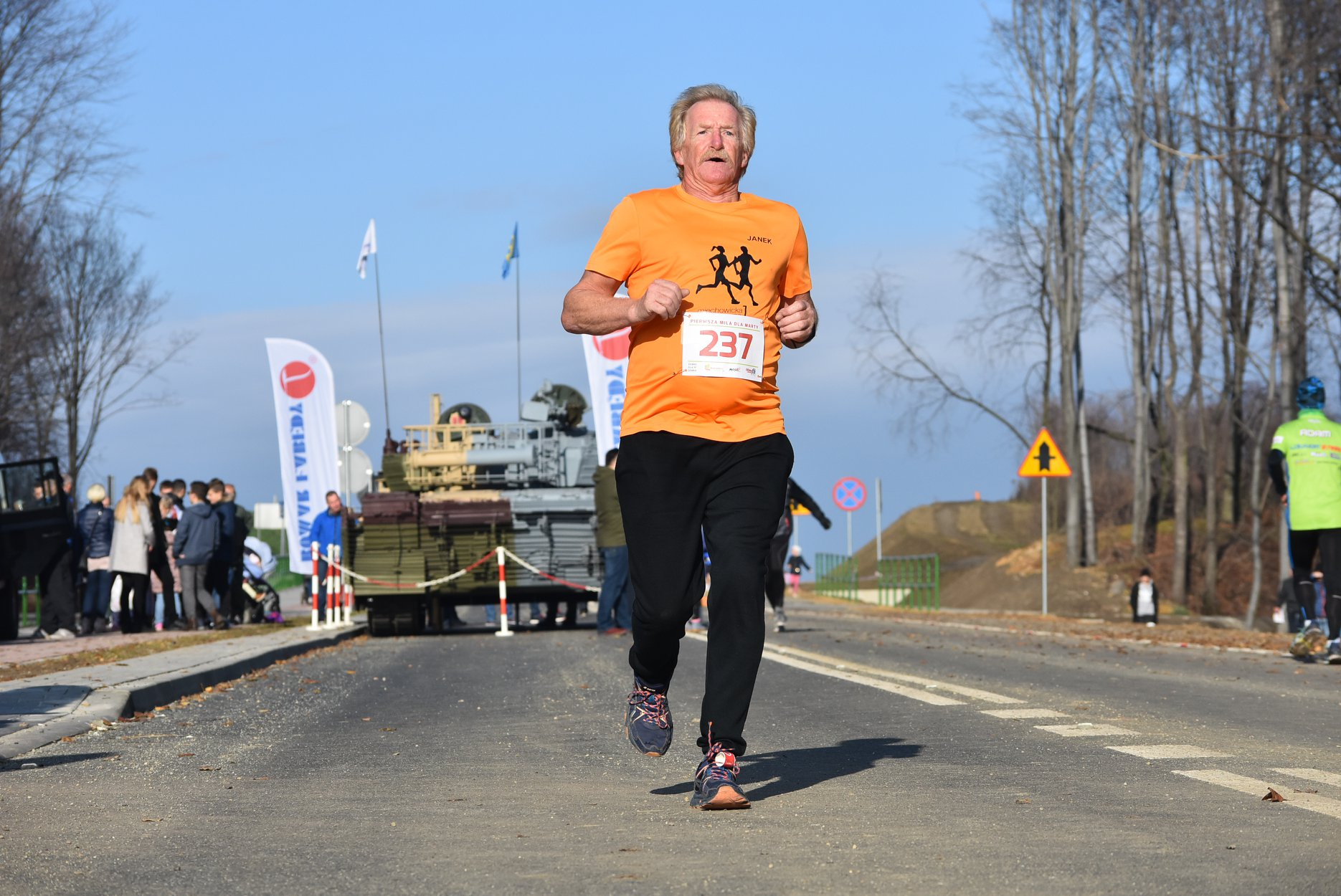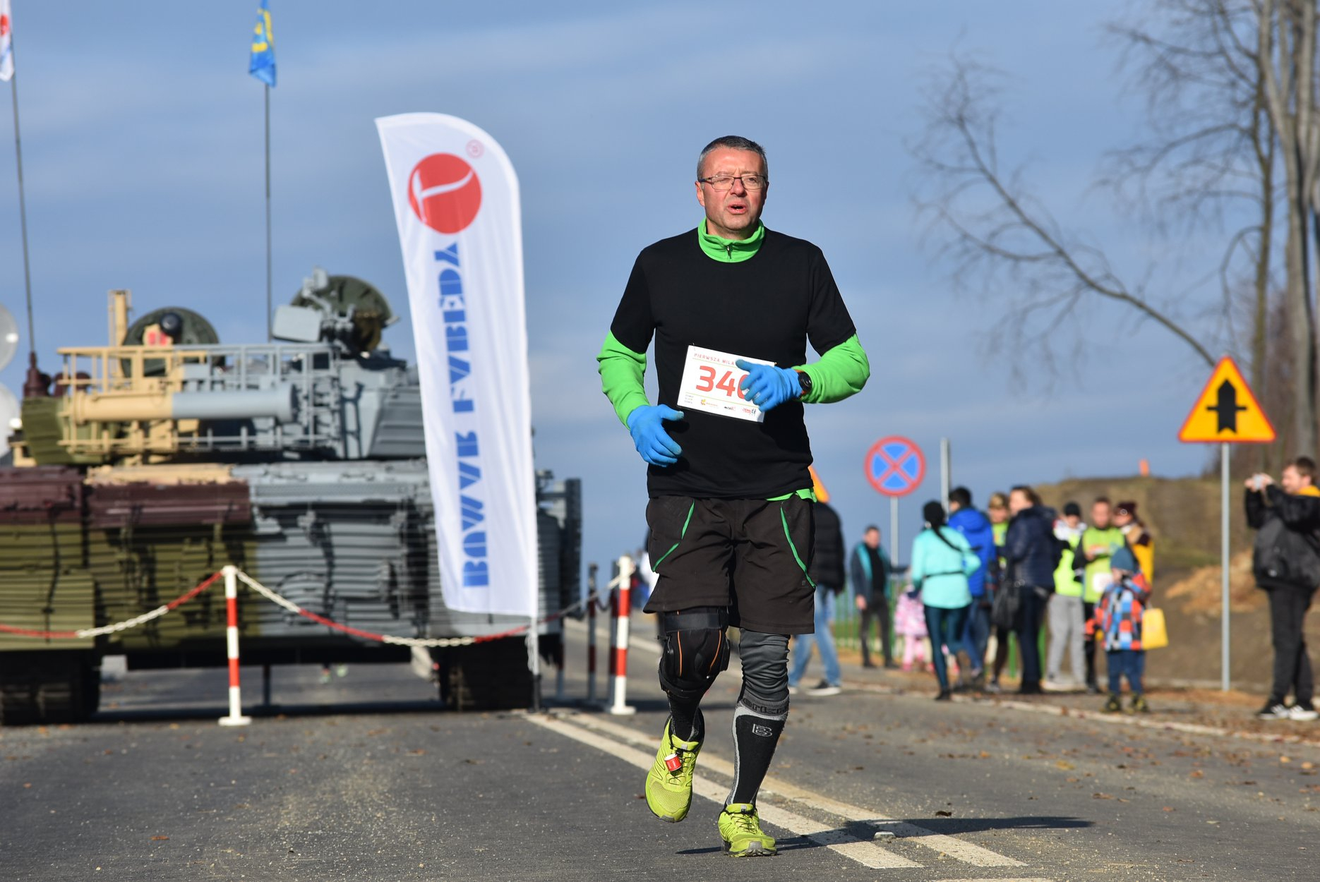 Marta też ostatecznie była z nami. Udało jej się wyrwać ze szpitala i przez nową obwodnicę Radzionkowa, na której odbywał się bieg, przejechała... czołgiem!